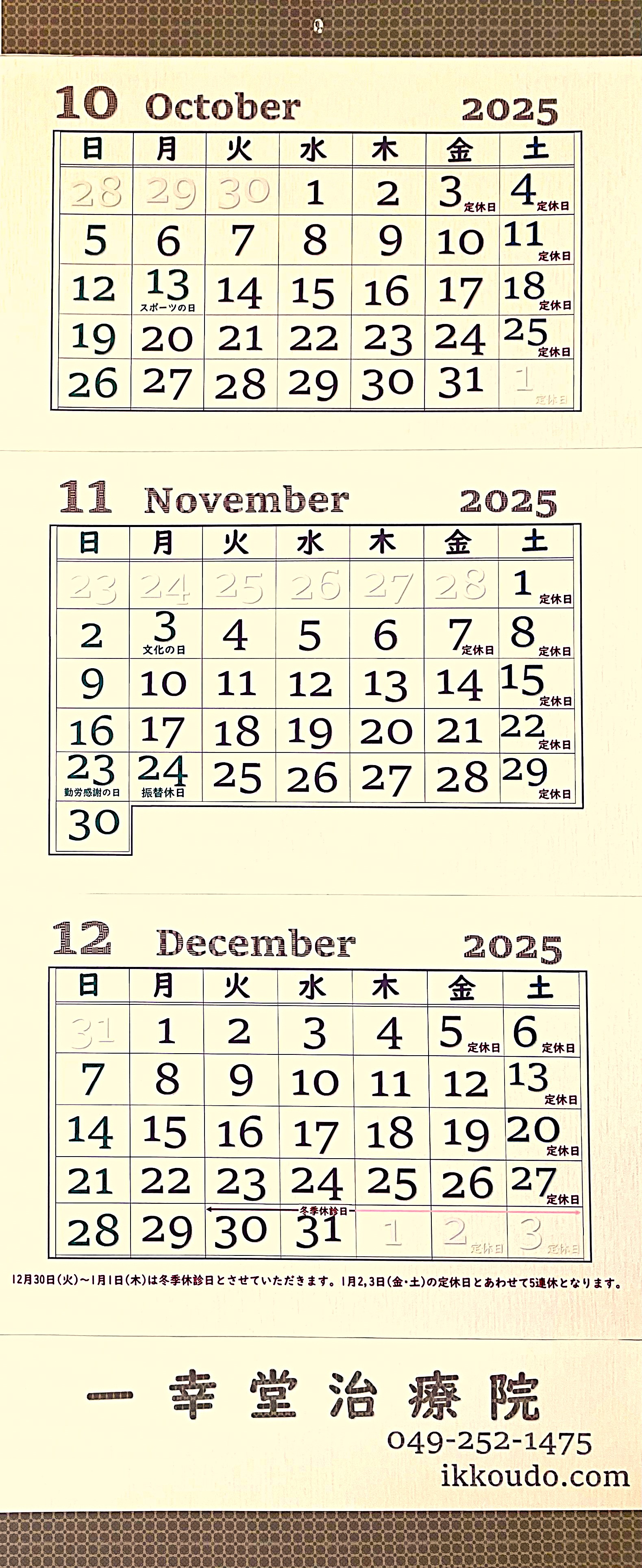 冬季休診日とさせていただきます。